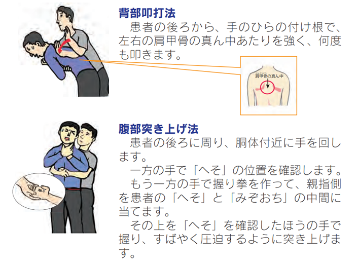 ※気道確保:あご先に指を1~2本あて、軽く頭を反らせて気道(鼻や口から取り入れた空気を肺まで通す道)を開く。