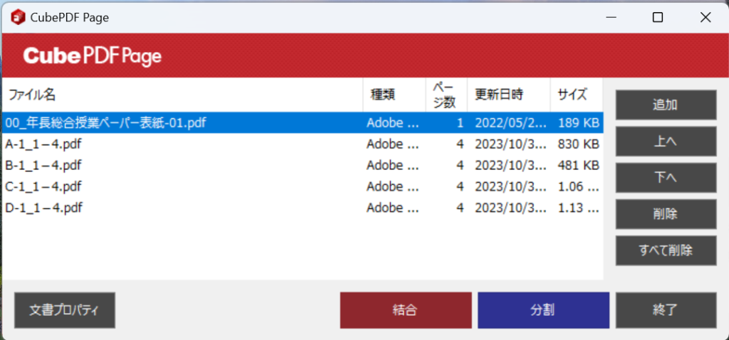 PDFを作成完了後、「cube PDF」で一括PDFにして保存