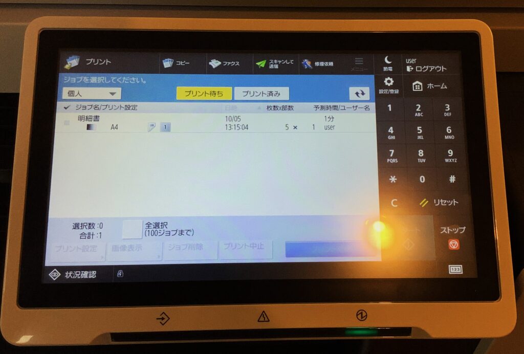 3. 自分が印刷登録をしたドキュメントが出てくるので、印刷したい対象を選択して