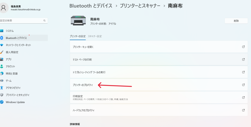1.矢印の「プリンターのプロパティ」を開く